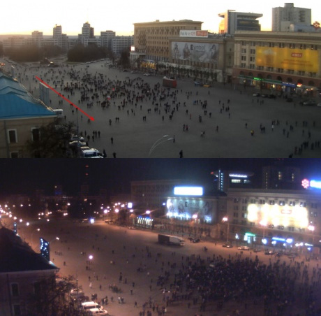 La toma de la Administración por los manifestantes separatistas pro-rusos se planeó para las 21:00 (hora ucraniana). Acerca de 500 personas, entre ellos casi 30 «militantes» – con pasamontañas y camuflaje. En sus declaraciones aseguraban que sólo necesitaban aguantar (la toma de la Administración) 24 horas porque la «ayuda» (¿¡de Rusia!?) ya está de camino…