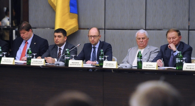 En la segunda mesa redonda de la unidad nacional, Leonid Kravchuk y Leonid Kuchma recuerdan la caída de la Unión Soviética y el Presidente de Crimea Meshkov.