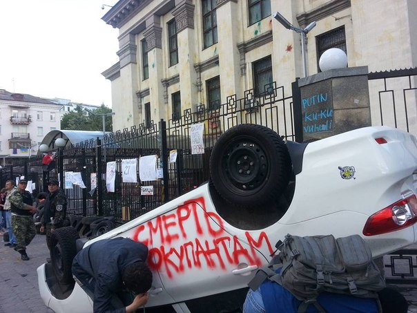 Sábado, 14 de junio, en la capital de Ucrania, Kiev, tuvo lugar una protesta enfrente de la embajada de Rusia, donde la gente vino a expresar su descontento hacia el gobierno de la Federación Rusa.