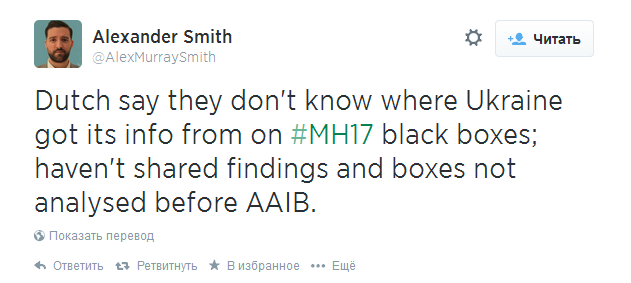 Tambien Smith escribió en Twitter que los holandeses no saben de dónde ucranianos recibieron datos de decodificación de las «cajas negras».