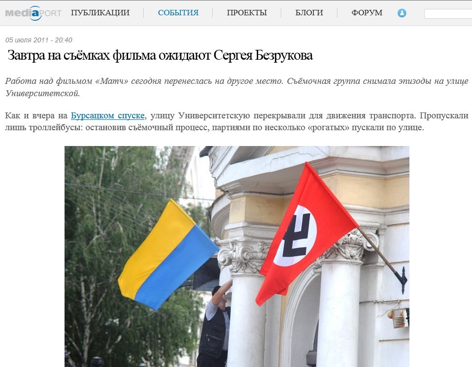 Sin embargo esta foto ya desde hace mucho tiempo «circula» en las redes sociales con diferentes inscripciones. Pero os recordamos que la foto ha sido hecha en el año 2011 en Jarkiv, durante la grabación de una película.