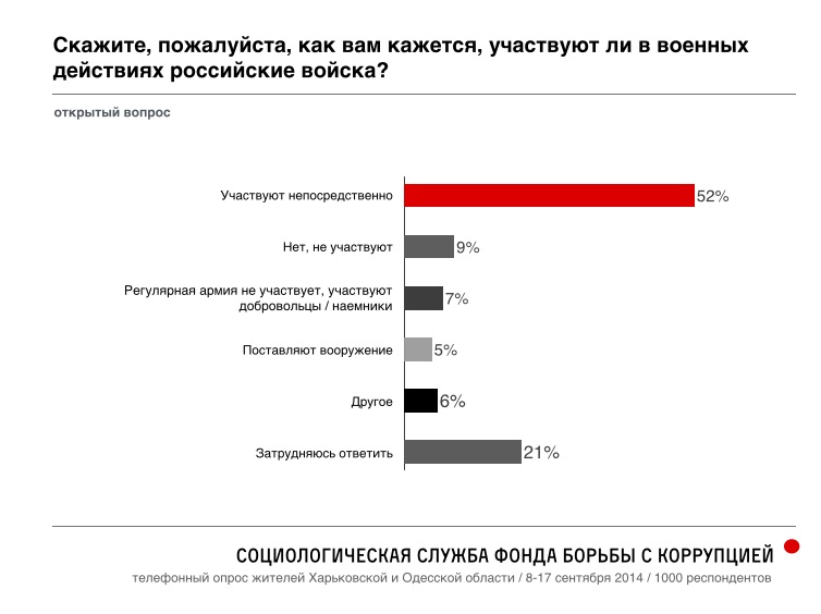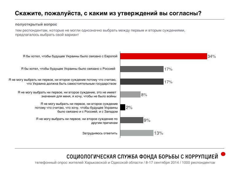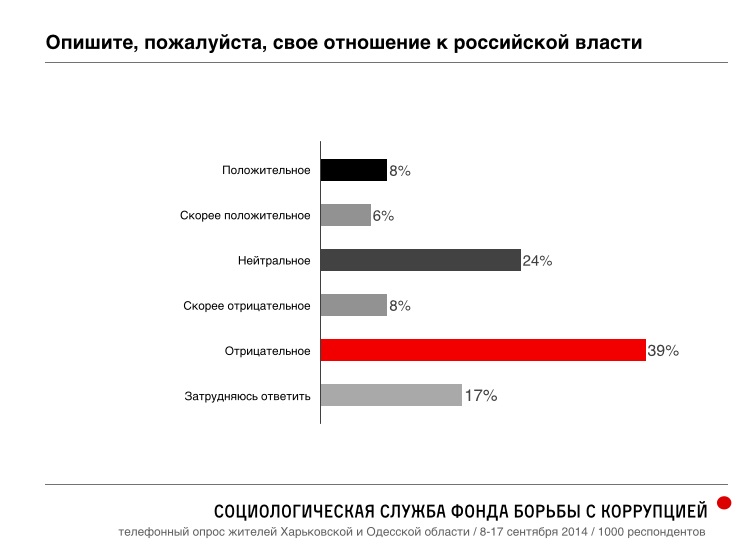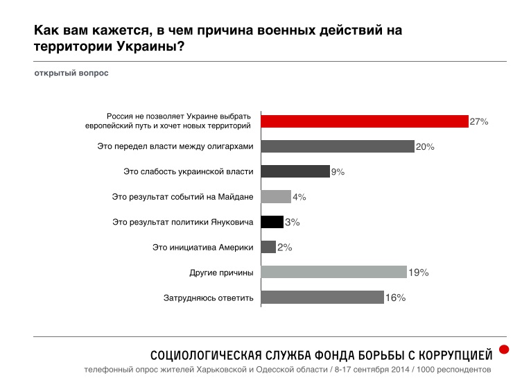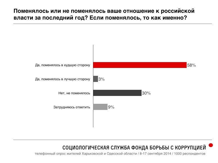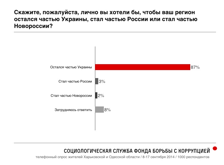 Servicio sociológico de la «Fundación de Lucha contra la Corrupción» (en adelante FBK), Rusia, realizó una encuesta sociológica en las provincias de Ucrania, en la de Járjiv (noreste del país) y de Odesa (sur) y presenta sus resultados.