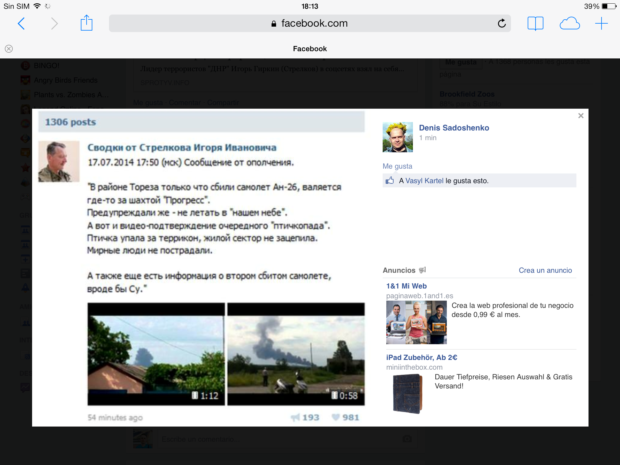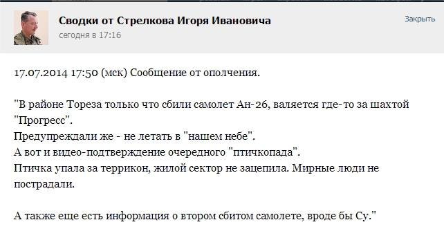 Recordando aquel trágico derribo del Boeing777 en el territorio controlado por los tal llamados «separatistas», uno de sus comandantes de aquel entonces, de igual manera empezó a difundir «buenas noticias» acerca de una victoria suya sobre el ejercito ucraniano al derribar ellos un avión militar ucraniano. La información se difundió rápidamente por la redes sociales hasta que se dieron cuenta de que aquel avión militar ucraniano derribado resultó ser un avión civil de MalasyaAirlines – el vuelo #MH17. Ante la gravedad de lo sucedido la propaganda rusa no podía quedarse callada y a base de invenciones e hipótesis absurdas empezaron a desmentir su implicación en lo sucedido.