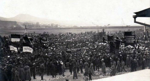 El 25 de marzo de 1917 en Petrogrado se realizó una manifestación masiva de 20 mil soldados y estudiantes ucranianos bajo banderas azules-amarillas. El 26 de marzo del mismo año en Kiev se celebró la “fiesta de la libertad”, donde soldados ucranianos iban bajo la bandera nacional. El proceso del renacer nacional ucraniano no solo arrasó en el territorio étnico sino también en las regiones del centro de Rusia, Siberia, el Turquestán, Lejano Oriente y otras tierras a donde el destino había llevado a los ucranianos reprimidos.