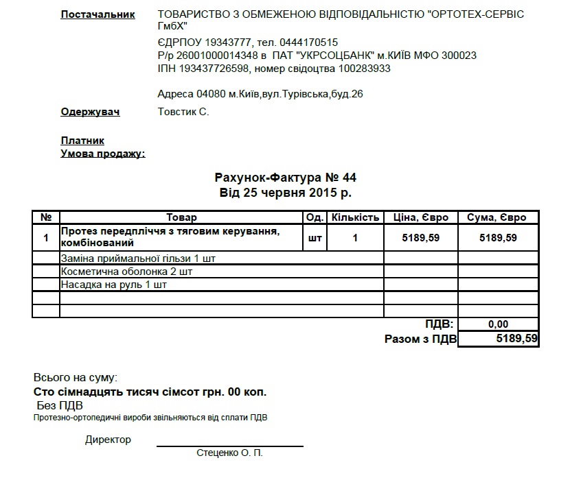 Estas prótesis primarias para Vadym Sviridenko y Sergiy Tovstyk las pagamos por partes aproximadamente iguales entre las comunidades ucranianas de tres provincias, la aportación de ConUcrania fue de 3435 € y de las comunidades ucranianas de las provincias de Málaga, Valencia y Alicante de 3162 €.