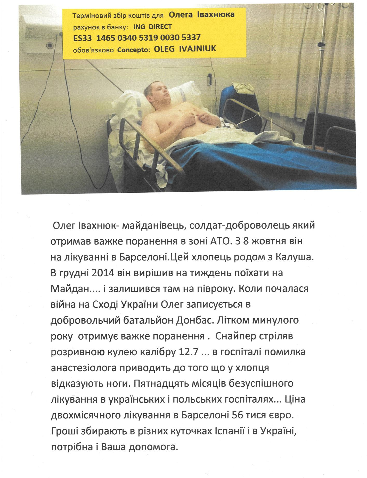 Друзі, Олег Івахнюк потребує нашої допомоги. Потрібна велика кількість грошей, але разом ми можемо їх зібрати.