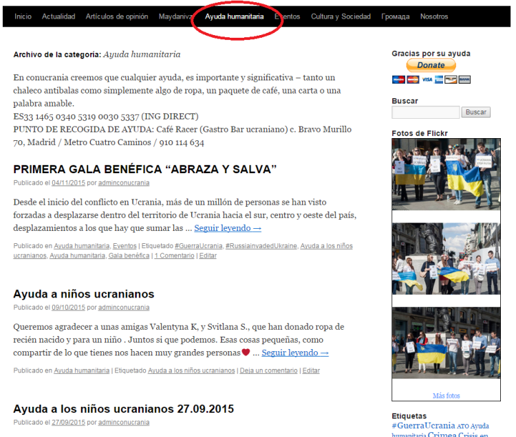 - Nosotros: se trata de una descripción de quién es ConUcrania. Lo podéis encontrar en español y ucraniano. También ahí mismo se encuentra un vídeo de la actividad realizada desde la constitución de nuestra asociación.
