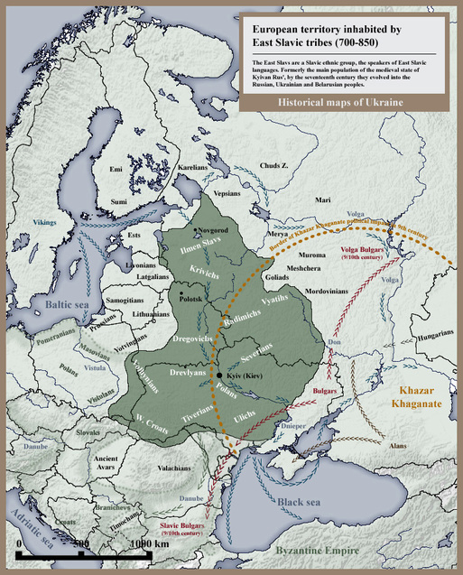 La mayor parte de las futuras tierras eslavas en los siglos III – IX formaban parte de las tierras del Imperio Romano, que ahora es el territorio de la actual Ucrania, Bielorrusia y Polonia, y mas tarde se trasladaron al sur y oeste y constaba de varias tribus – escitas, sármatas, búlgaros, hunos entre otros.