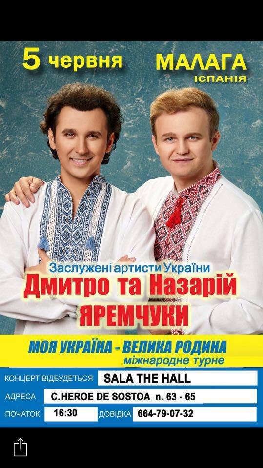 Заслужені артисти України Дмитро та Назарій Яремчуки в рамках другої частини міжнародного турне «Моя Україна-велика родина» знову відвідають Іспанію.