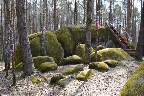 Este pueblo está vacío. Aquí no vive nadie. Se diferencia de los demás pueblos por su paisaje extraño. Es como el Stonehenge ucraniano. A pesar de esta extraña exposición de piedra, también atrae la atención y la curiosidad de los turistas la llamada «la Huella De Dios»: una profundización en la piedra que recuerda la huella, dicen que cura muchas enfermedades.