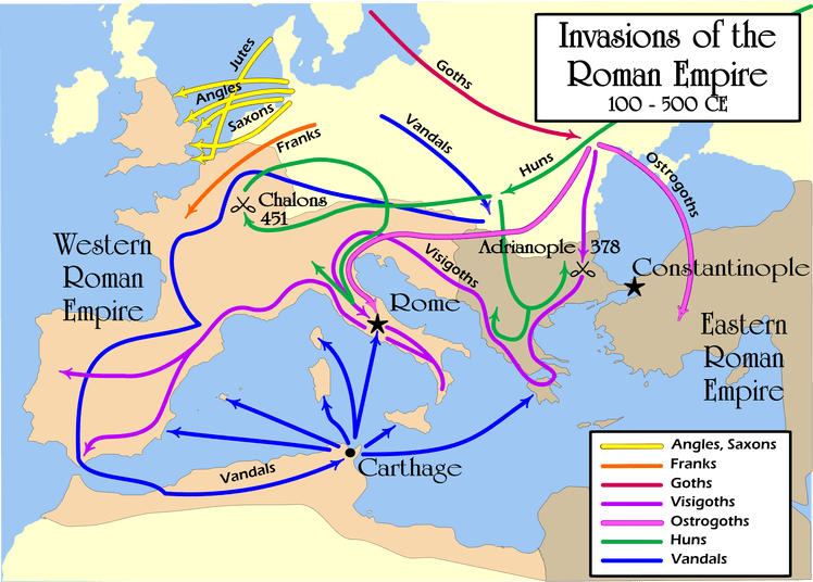 Sus relaciones con la gente de las estepas fue primordialmente bélica durante el siglo IV, con el período conocido en historia antigua como «Invasiones Bárbaras», y en la actualidad como «El período de la migración».