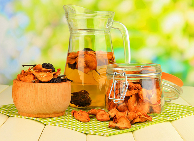 - Calentar el horno a 90-100 °C, verter la mezcla de frutas, agua, horilka y especias en una cacerola de arcilla, tapar con la masa de harina presionando a los lados, colocar algo pesado encima y meter al horno. Dejar por 10 a 12 horas.