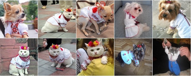 Por cierto, las ropas bordadas no solo se usaban para automóviles. Las mascotas también recogieron temas patrióticos. O mejor, sus dueños. Cada vez más gatos y perros aparecen en Internet y en las calles con trajes nacionales ucranianos.