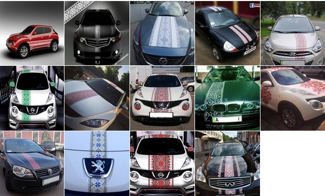 1. ¡Las decoraciones bordadas con bordado se hicieron tan populares que ahora están decoradas no solo las camisas! Recientemente, los ucranianos tienen una nueva tendencia: la auto vyshyvanka. Los automovilistas decoran sus vehículos con pegatinas especiales. Para cada cliente, se crea un diseño especial.
