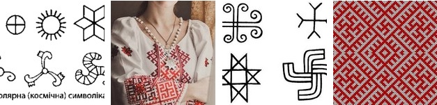 2. Una gran cantidad de adornos utilizados en la decoración de bordado, llegan a sus raíces hasta los tiempos paganos. Por ejemplo, los signos solares (o «rayo», «la rueda de Júpiter») están asociados en el dios pagano, llamado Rod que simboliza a la “familia”.