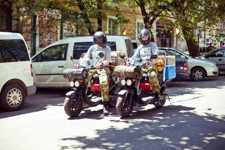 “Como hemos reportado antes, los valientes viajeros de Odesa han fijado su ruta de Odesa-Vladivostok-Ulan-Bator-Odesa para recorrer en motonetas. Se dio el banderazo de arranque simbólico el martes 9 de julio. Los chicos habían planificado partir la mañana del 10 de julio, pero la preparación del equipaje tardó más de lo esperado y, por supuesto, los muchachos necesitaban dormir bien.