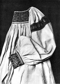He aquí la blusa de una anciana de Lubyna. El frente aún lleva pliegues, y hay bordados sobre ellos.