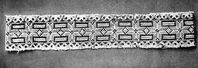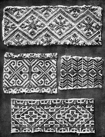 Como en la zona anterior, las mangas se cortan en una pieza sin un aditamento para el hombro. El frente está fruncido, aunque no más allá del bordado, y tiene la abertura del cuello en un lado. En esta zona el bordado tiene motivo geométrico.