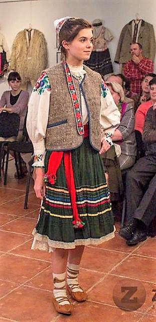 El bordado aquí no es muy similar al de los valles vecinos, sino que tiene muchas características del tejido Rusino, y ha influenciado al traje del oeste de Eslovaquia. Las mujeres visten falda y delantal, y los hombres pantalones de lino o lana, aunque estas fotografías son en su mayoría de camisas y bordados.