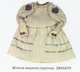 He aquí la blusa de una anciana de Lubyna. El frente aún lleva pliegues, y hay bordados sobre ellos.