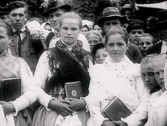 Estas imágenes son tomqdas de un video de la década de 1920. Muestra una reunión en las aldeas de Nevyts’ke y Kamianytsia cerca Perechyn, al norte de Uzhhorod.