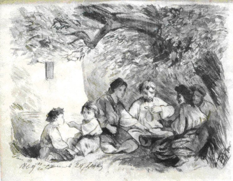 Durante los años 1874 a 1880 iba a pasar los veranos a recorrer los pueblos y aldeas de Poltava, Járkiv y Cherníhiv, y se enamoró de las tradiciones rurales de su tierra, retratando escenas típicas de esas regiones. Realizo varios bosquejos además, entre los que está el retrato del Kóbzar Iván Kravchenko, realizado en 1876; también Oksana Burshtrymyja en 1875, Petro Tarasenko el mismo año, el «Kobzar Tyjon Mahadyn de la aldea Bubny» en 1876, también ««Chumak Myhal de Veremiyivky» en 1880, y muchos otros.