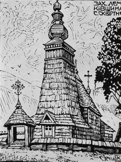 A partir de 1920 comenzó a colaborar también con la literatura ucraniana, ilustrando y diseñando obras de Ivan Franko, Myailo Kotsiubynsky, Vasyl Stefanyk, y Yurii Fedkovych, asi como más de 70 volúmenes de la serie «Para nuestros más pequeños», que incluía obras como «El niño-estrella» de Oscar Wild, en 1920.