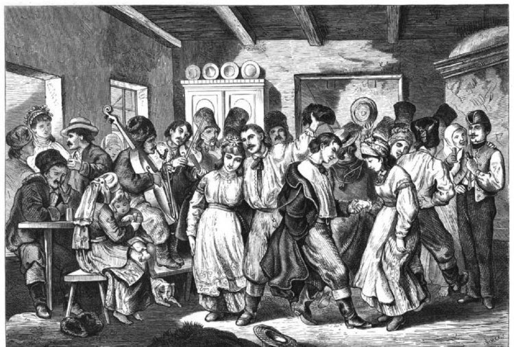 La korchma en una aldea era, sin embargo, más similar a la actual cafetería. Antes de ir al trabajo, las personas iban a la taberna. Y después del trabajo, pasaban otra media hora por ella, para un descanso y conversación, y a veces durante el almuerzo, si el sitio de labores se encontraba cerca.Durante dias festivos y celebraciones especiales como bodas, toda la aldea asistía a la posada, que funcionaba como los actuales salones de eventos. También bautismos y servicios religiosos terminaban en estos lugares, por lo que generalmente se colocaba una cruz de piedra entre la iglesia y la posada, plantada junto a cuatro árboles de tilo (monumento a la destrucción del cuerpo).En ocasiones también servía como sitio de reunión para la toma de decisiones serias para la administración de la aldea.