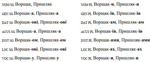 Los apellidos de género gramatical masculino finalizados en –(j)ak declinan de la siguiente manera [5]: