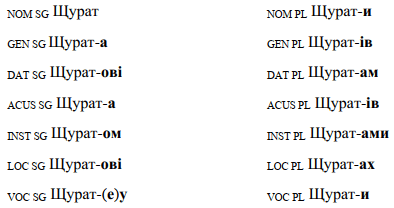 Los apellidos de género gramatical masculino finalizados en –(j)at declinan de la siguiente manera [1]: