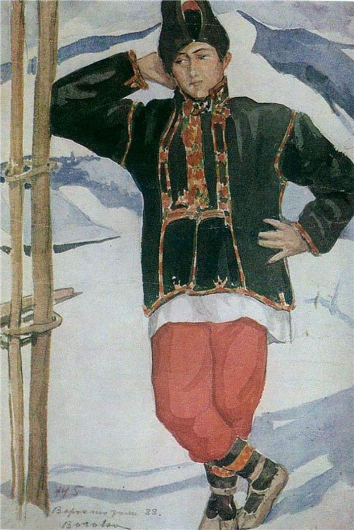 Era la víspera de una gran festividad. Al día siguiente el cálido Yurii tomaba las llaves del dios del frío Dmytro, para entonces gobernar el mundo. Las aguas llenas, en las cuales navegaba la tierra, la elevaban hacia el sol. San Yurii decoraba los bosques y prados; las ovejas quedaban cubiertas de lana como la tierra de grama en verano, y las praderas de hano se tornaban verdes. La luz del sol y alegría primaveral venían al siguiente día, y ya las fogatas se emplazaban arriba en las colinas montañosas y el azul humo envolvía los abetos en un velo transparente. Cuando se había puesto el sol, las hogueras ya habían muerto y el humo se había replegado, el ganado ya estaba mugiendo felizmente mientras era arreado sobre las brillantes brasas para mantenerlos tan vivos como el propio fuego durante todo el verano y para que se multiplicaran como las cenizas se multiplican a partir del fuego.