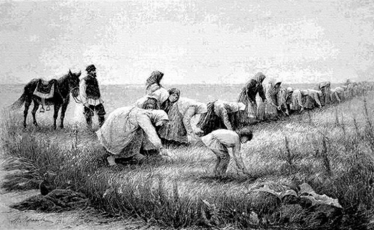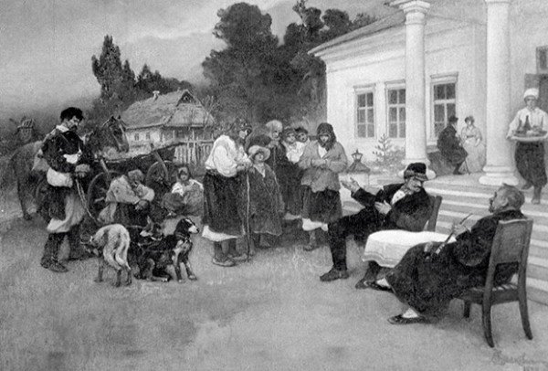 La cantidad de trabajo obligatorio, conocido como «Corvea»(*) que el campesino debía al señor, dependía del tamaño y calidad de la parcela, pero la cantidad exacta de trabajo era más a menudo arbitraria. El sistema ruso de servidumbre, que fue establecido en territorios ucranianos bajo gobierno ruso a fines del siglo XVIII estaba basada en el principio de que el señor feudal era propietario incluso del campesino que estaba bajo su control (ver «Almas Muertas«). Podía disponer de sus sirvientes como quisiera: podía incluso separarlos de sus tierras. La cantidad de trabajo que los campesino les debían, y el tamaño de sus lotes, dependía de la cantidad de hombres adultos en sus familias.