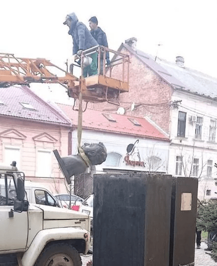 Una situación similar se dio en Mukachevo, en la provincia de Zakarpattia, en donde ya desmantelaron el monumento a los soldados soviéticos que, si bien liberaron esa región de los invasores nazis, también vinieron a establecer el régimen soviético. En Ucrania occidental, los soviéticos no son considerados «libertadores», sino que apropiadamente «invasores»: