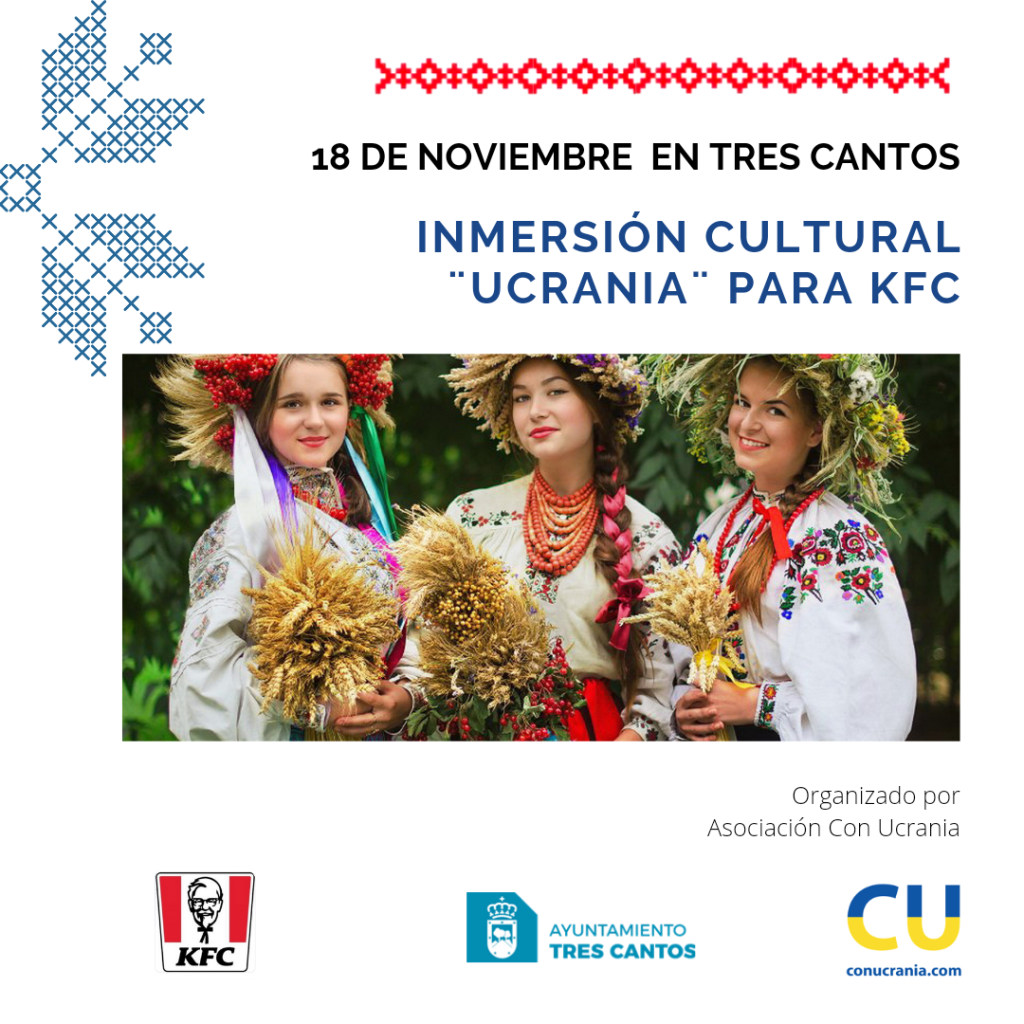 Hoy, día 18 de noviembre, se ha celebrado la jornada de inmersión cultural ucraniana para KFC. Estamos muy agradecidos a KFC por la oportunidad de dar a conocer Ucrania y a la casa de juventud de Tres Cantos por la utilización de su espacio. Ucrania es un país maravilloso, y merece la pena conocer su historia, cultura e ir a visitarla 💙💛