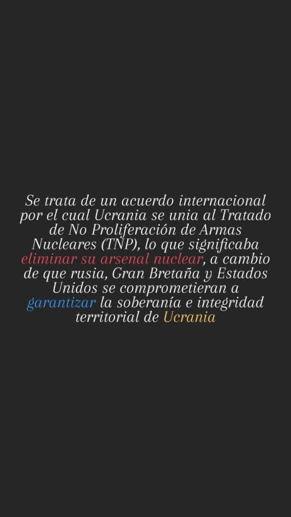 Se trata de un acuerdo internacional por el cual Ucrania se unia al Tratado de No Proliferación de Armas Nucleares (TNP), lo que significaba eliminar su arsenal nuclear, a cambio de que rusia, Gran Bretaña y Estados Unidos se comprometieran a respetar la soberanía e integridad territorial de Ucrania.