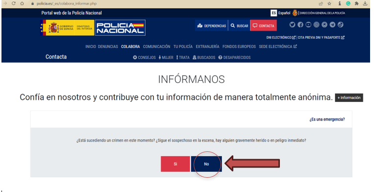 5. Можете також заповнити формуляр, якщо у вас є дані про підозрювану особу (опціонально). Натиснути на синю кнопку “Siguiente”: