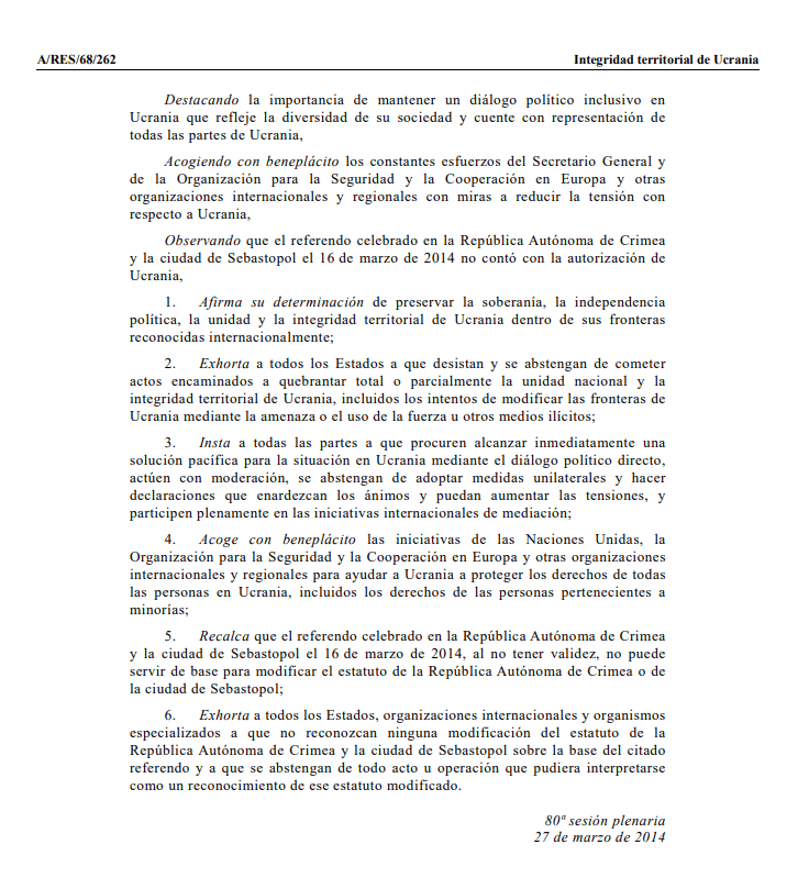 1.- El 6 de marzo, el Parlamento de Crimea ha aprobado una resolución (nº1702-6/14) por la cual se declara la intención de que Crimea entre en la Federación Rusa.