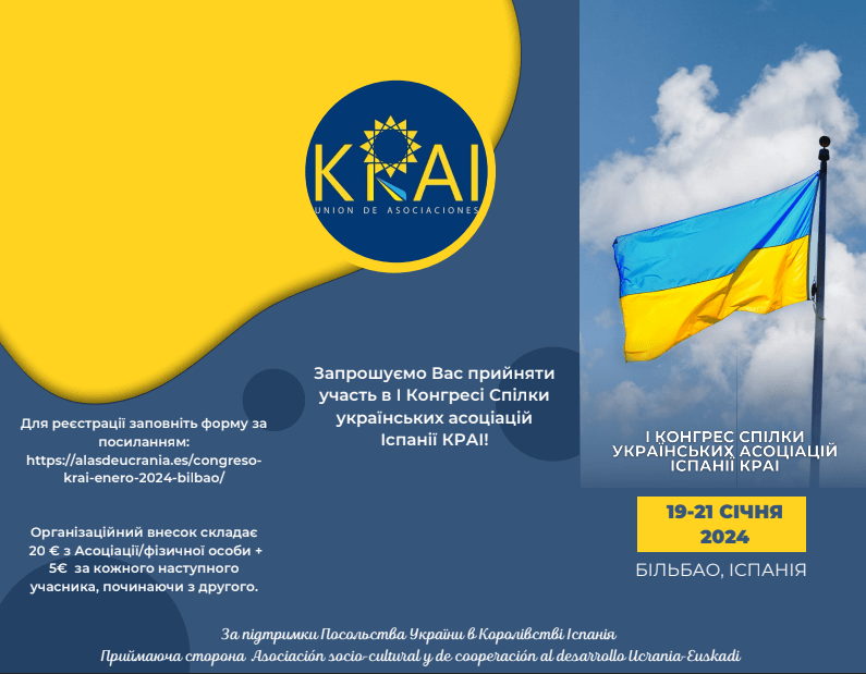 Запрошуємо Вас прийняти участь в І Конгресі Спілки українських асоціацій Іспанії КРАІ!