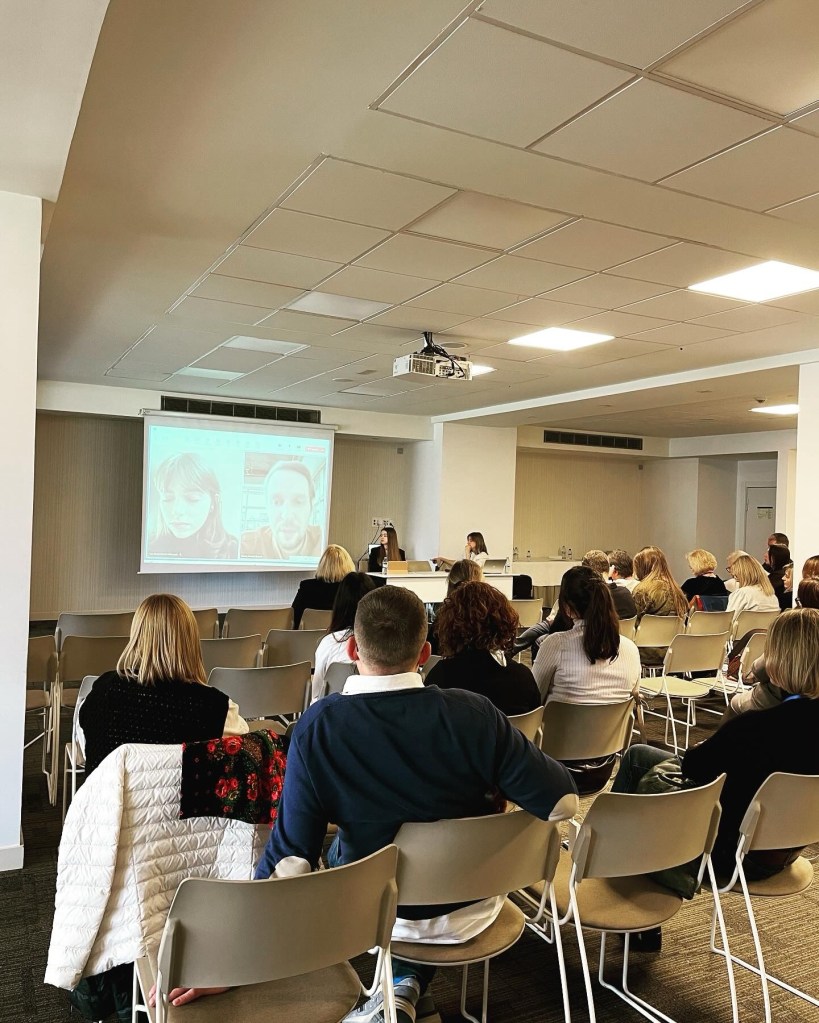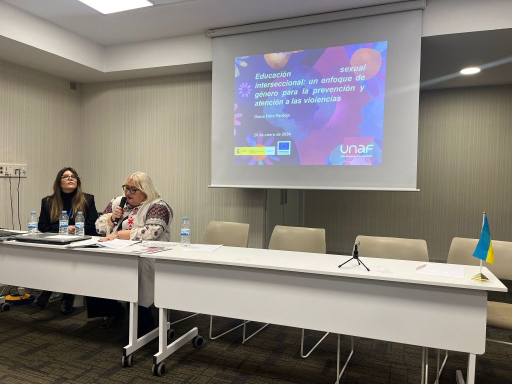 Oscar García Madarro (Asociación Galega de Ayuda a Ucraína AGA-Ucraína) y Darina Kosarim (Alas de Ucrania) compartieron sus experiencias en el panel «Colaboración con organizaciones / administración / empresas españolas», mientras María Jouve (Organización Internacional para las Migraciones) contó sobre el proyecto Matriz, como hacer y justificar los proyectos.