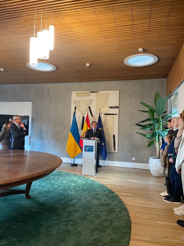 El Ministro D. José Manuel Albares destacó el compromiso de España en apoyo a Ucrania, mientras que el embajador de Ucrania Serhii Pohoreltsev expresó su agradecimiento al pueblo español por su respaldo.