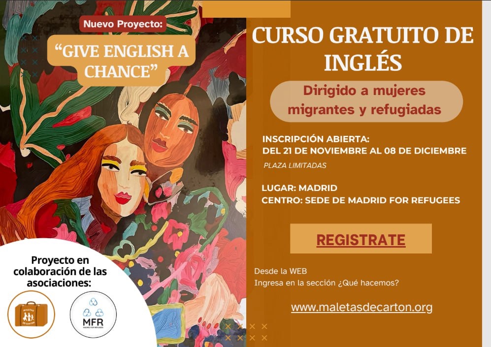 Un curso básico de inglés gratuito, organizado por Madrid for Refugees en colaboración con dos profesoras del programa Fulbright. Está diseñado especialmente para mujeres refugiadas y migrantes, con el objetivo de proporcionarles herramientas lingüísticas prácticas que faciliten su vida diaria.