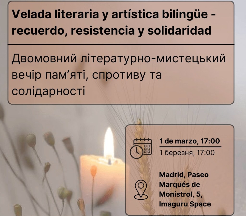 Os invitamos a una velada literaria y artística bilingüe (ucraniano y español).