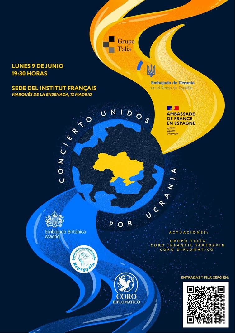 Ayer, lunes 9 de junio, la sede del Institut Français de Madrid acogió el emotivo concierto “Unidos por Ucrania”, un evento solidario que reunió a organizaciones comunitarias, misiones diplomáticas y amantes de la música con un objetivo común: crear conciencia y recaudar fondos para apoyar a Ucrania.