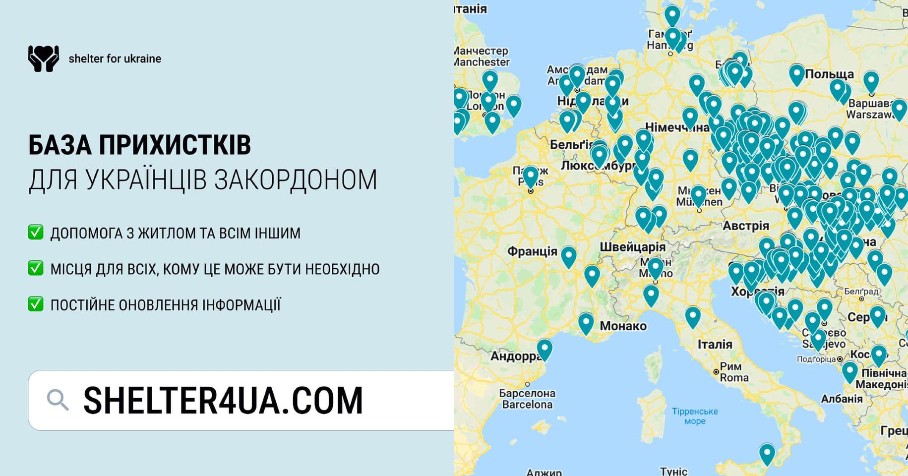 Hoy se ha lanzado el servicio https://www.shelter4ua.com/, que está diseñado para coordinar a los ucranianos que buscan refugio en el extranjero y para aquellos que pueden proporcionarlo.