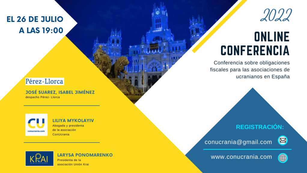 El 26 de julio a las 19:00 tendrá lugar ONLINE conferencia sobre obligaciones fiscales para las asociaciones de ucranianos en España.