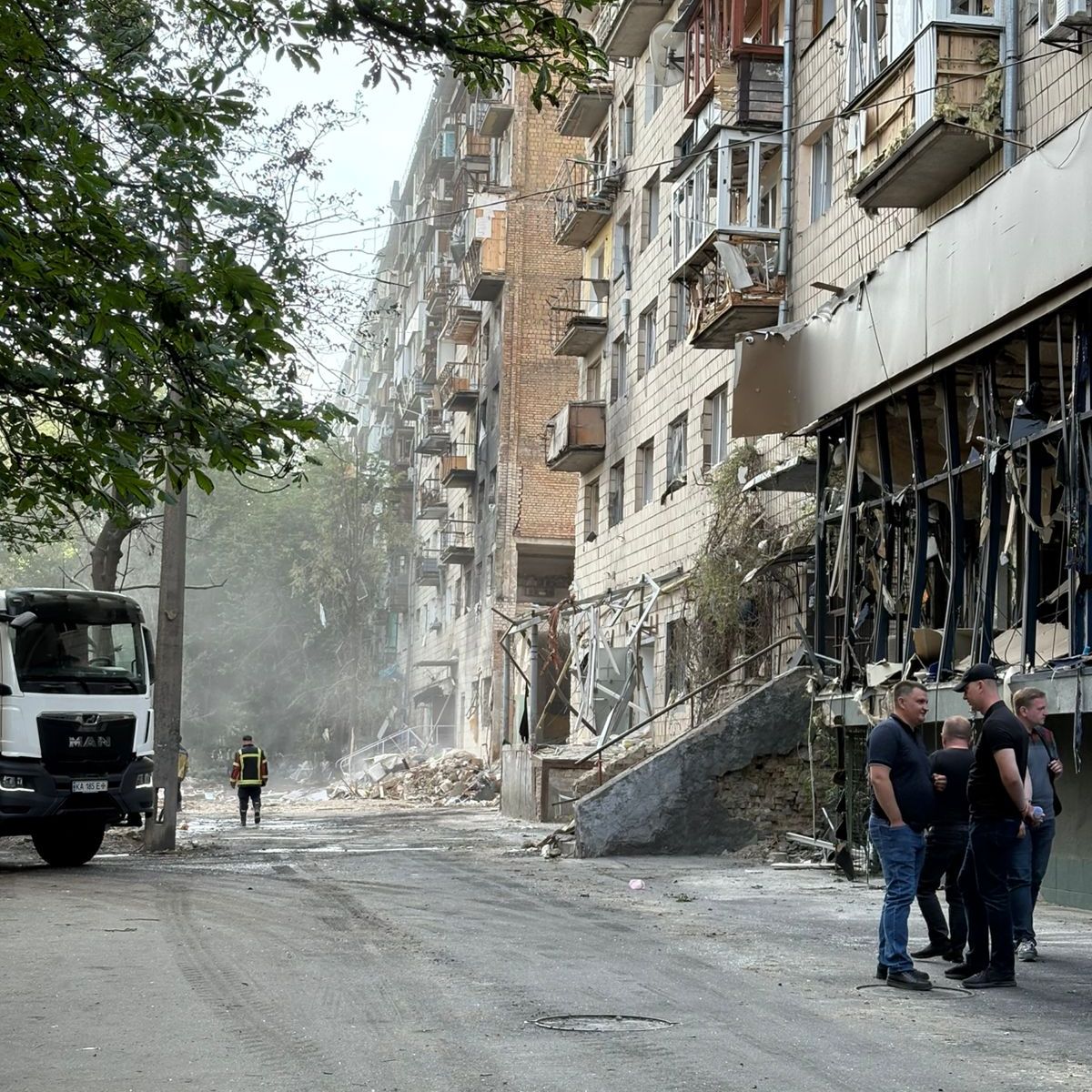 Kyiv volvió a ser golpeado por un ataque ruso. En el distrito de Solomianskyi, un bombardeo destruyó viviendas, rompió ventanas, dañó estructuras y dejó a decenas de familias sin hogar, sin agua, sin electricidad y sin seguridad.