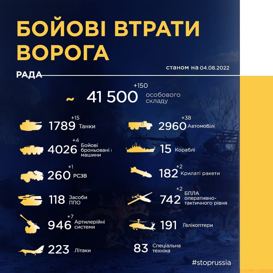 Esto fue reportado por el Directorado de Inteligencia del Ministerio de la Defensa de Ucrania. El directorado llama a la comunidad internacional pidiendo la protección a esta región para que la inspección por la misión de la IAEA se realice con seguridad, y para que la Planta Nuclear de Zaporizhzhia sea completamente desmilitarizada, junto con sus alrededores residenciales.