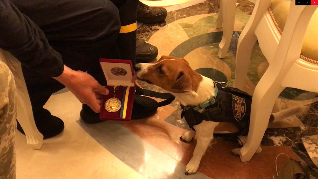 El Presidente Volodýmir Zelenskyi, en una reunión con el Primer Ministro de Canadá, el 8 de mayo, le otorgó a un perro heróico, de nombre «Patron», originario de Cherníhiv, la medalla al valor en tercer grado.