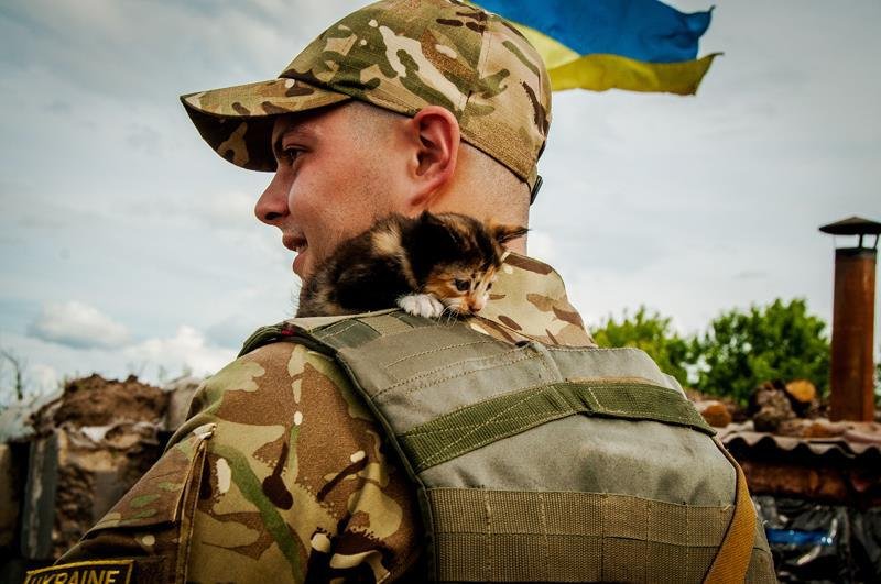 Los ucranianos, sean militares o civiles, AMAN a los animales.