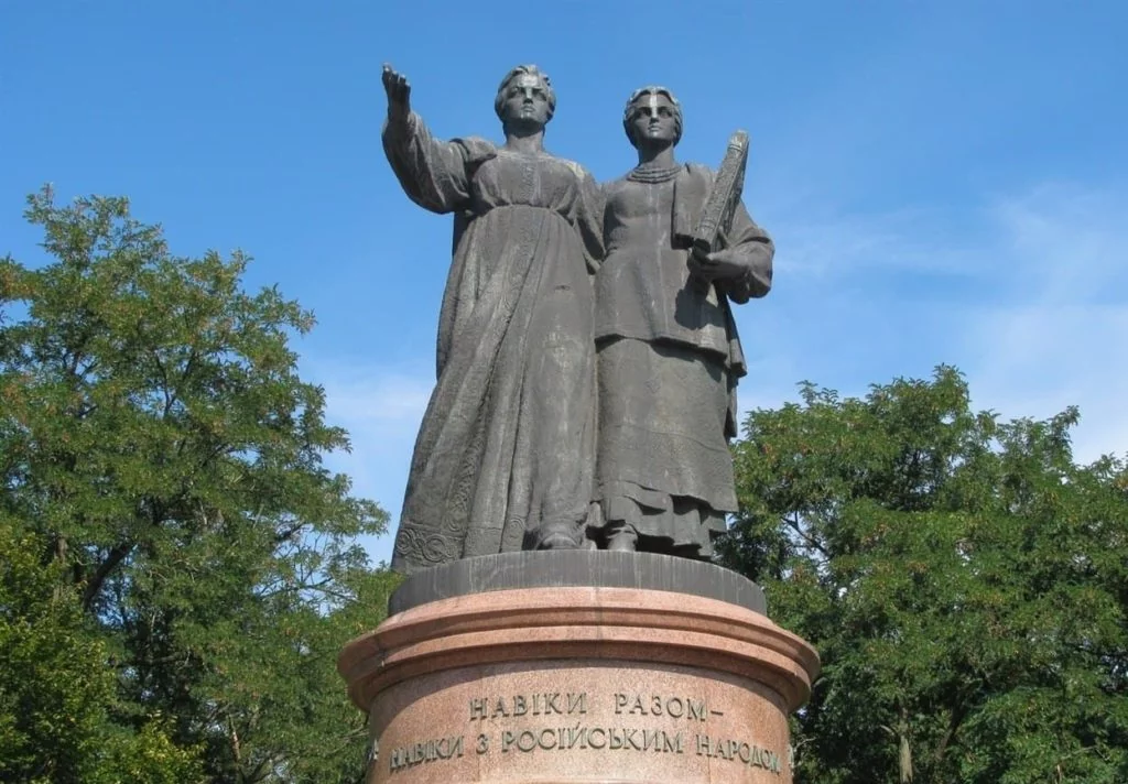 Uno de los primeros monumentos que ya fue desmantelado era una estatua monolítica de bronce que glorifica la mentira de una «Unificación de Ucrania con Rusia», ubicada en el centro de Kyiv. Era un tributo a los soviéticos, y a los rusos, que implicaba que Ucrania no podía existir sin «la gran Rusia», un concepto de Ucrania como «nación hermana».